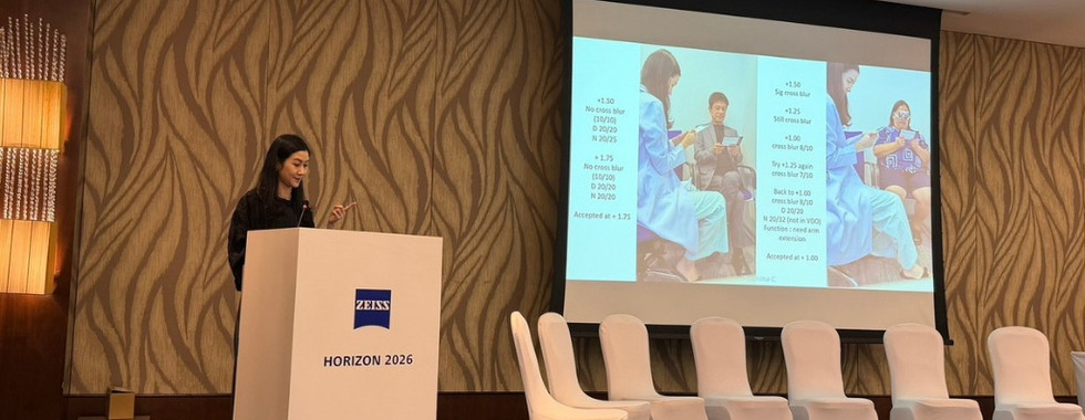 ในวันแรก (17 เมษายน 2569) ของการประชุม พญ.ปัจฉิมา จันทเรนทร์ จักษุแพทย์ผู้เชี่ยวชาญด้านศัลยกรรมกระจกตาและการแก้ไขสายตาผิดปกติ ร่วมบรรยายในหัวข้อ “Laser Setting and Tolerance Test” ถ่ายทอดแนวคิดและเทคนิคการตั้งค่าเลเซอร์ควบคู่กับการประเมินการมองเห็น เพื่อเพิ่มความแม่นยำและประสิทธิภาพในการรักษาภาวะสายตายาวตามอายุ